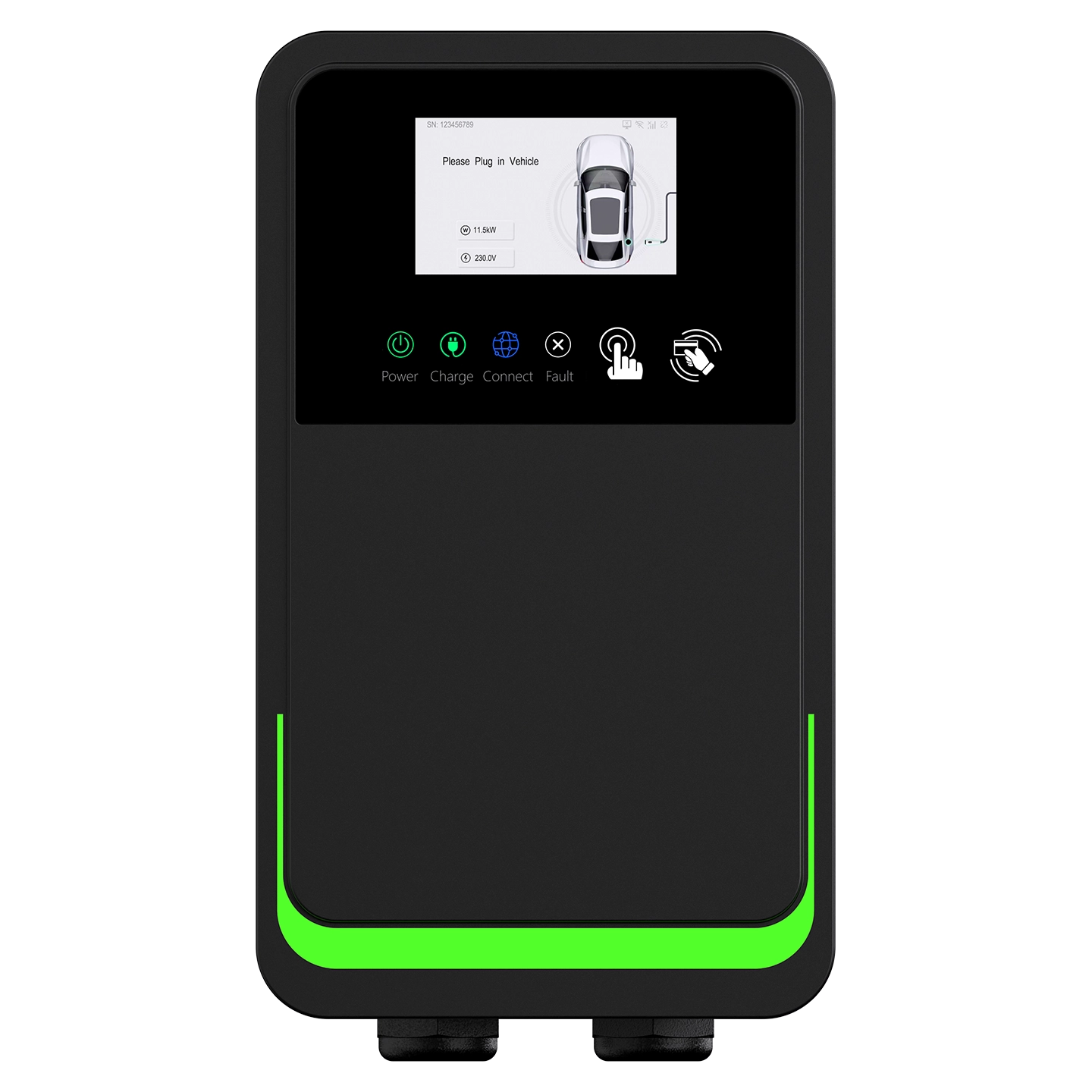 The 4.3-inch LCD display (480×272 resolution) provides clear and intuitive information at a glance, including charger status, charging progress, QR codes, and on-screen prompts. The interface can also be fully customised to reflect your brand identity.